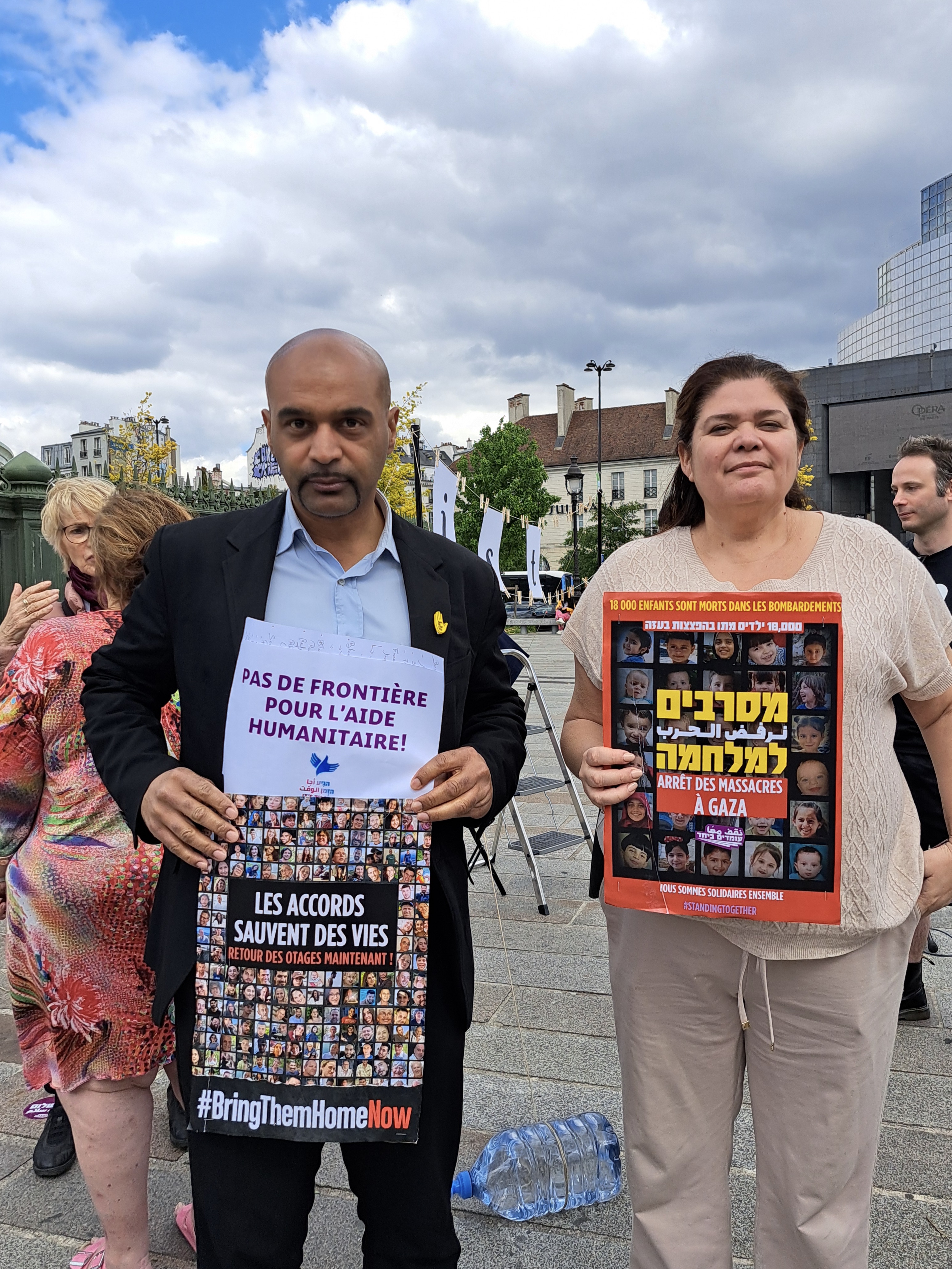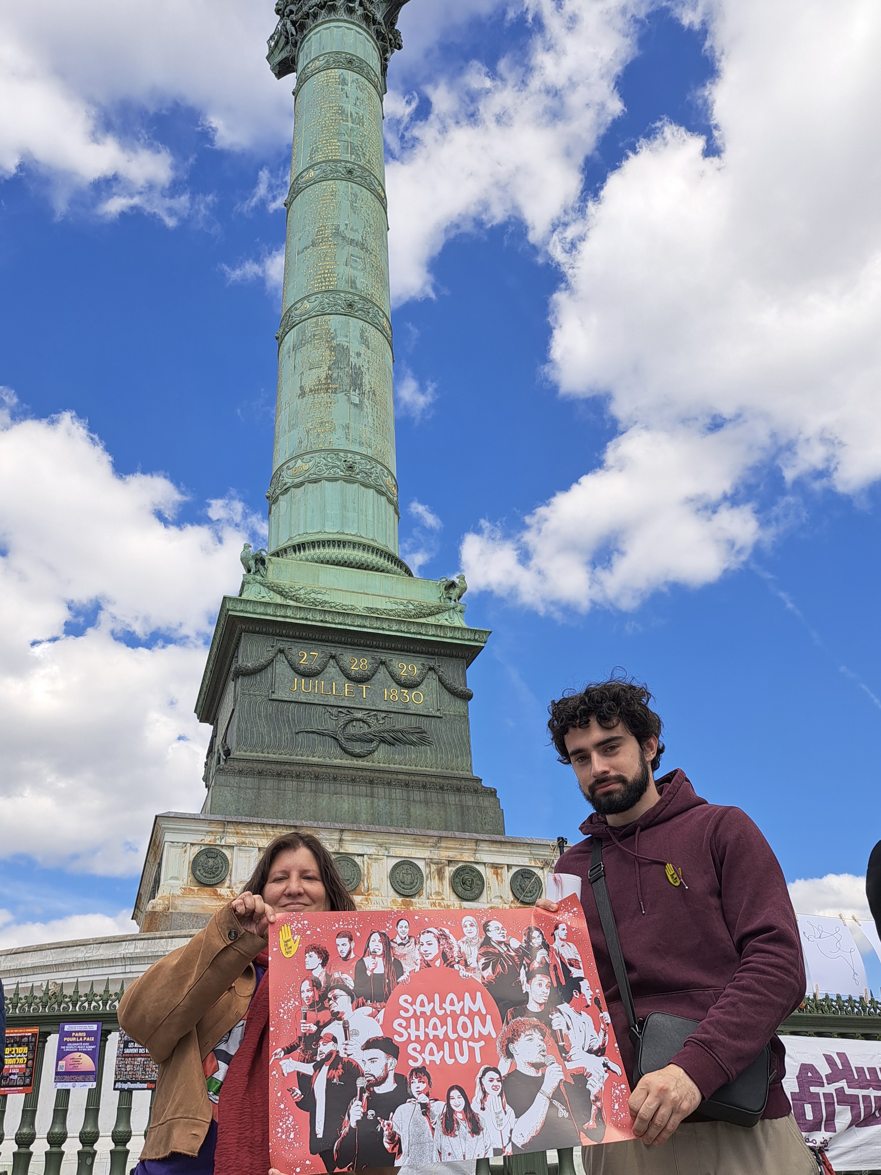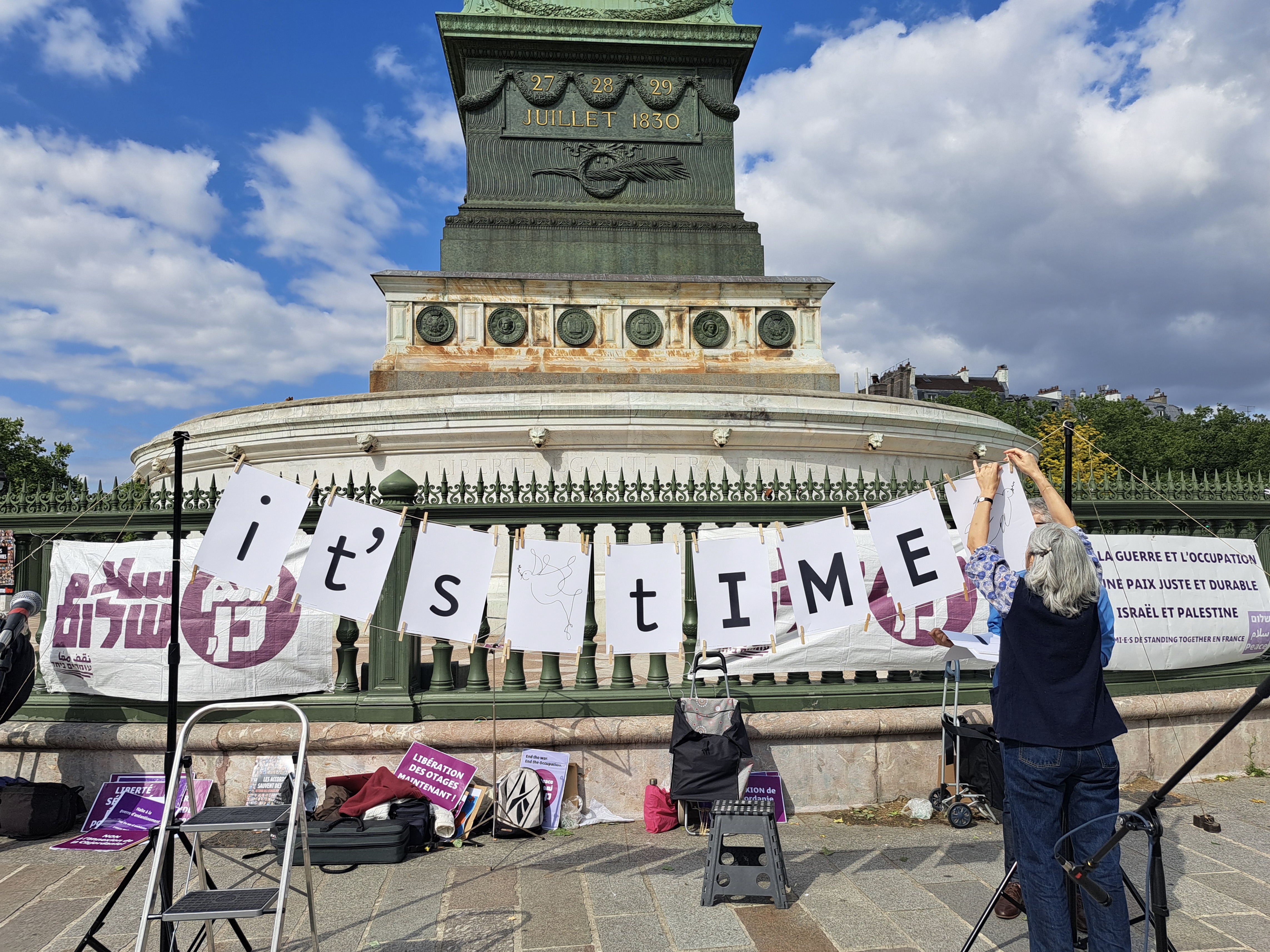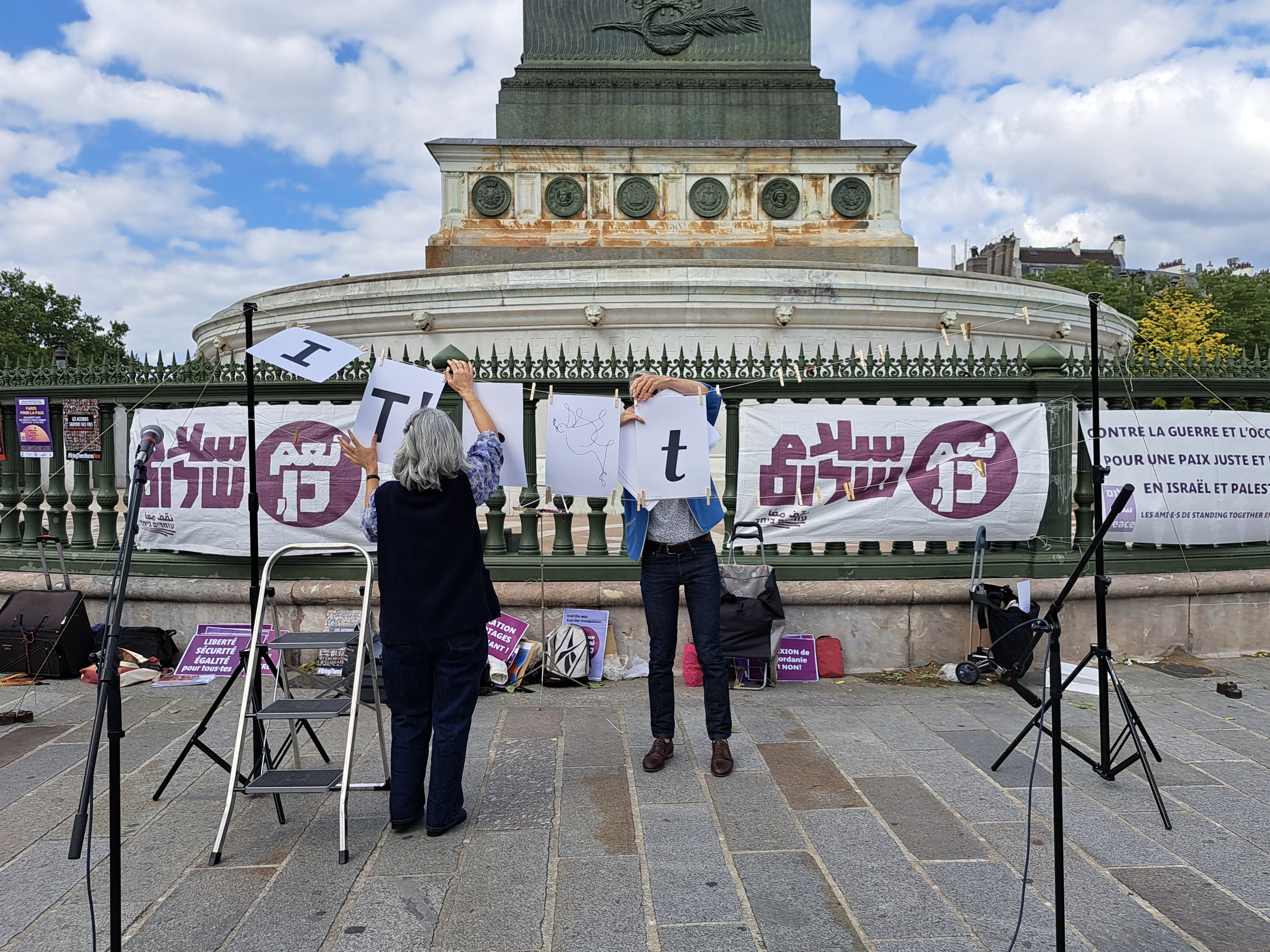 In France, the action is supported by Ami.e.s de Standing Together en France (FoST France), Alliance for Middle East Peace (ALLMEP), SOS Racisme, La Paix Maintenant and Les Guerrières de la Paix.