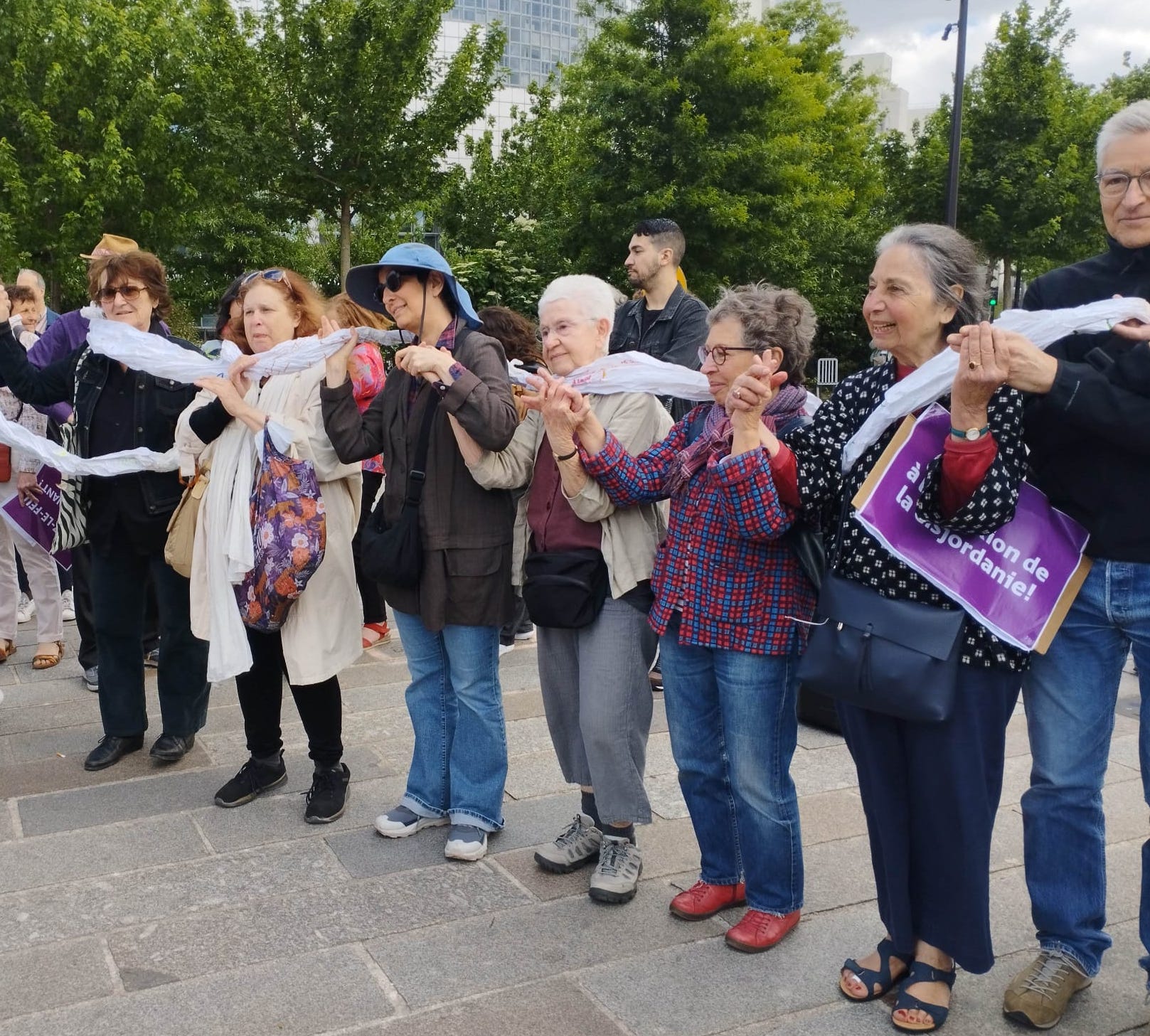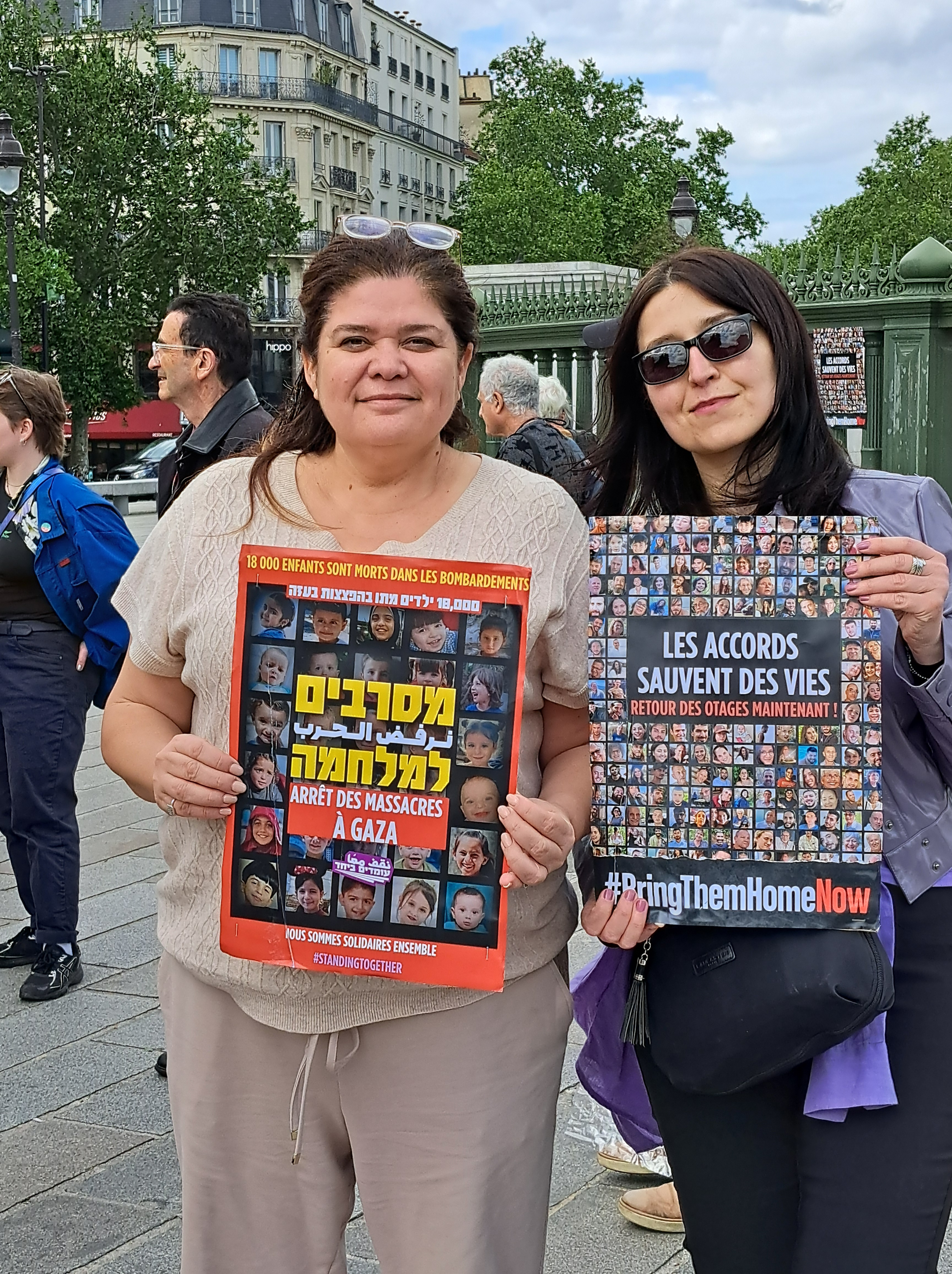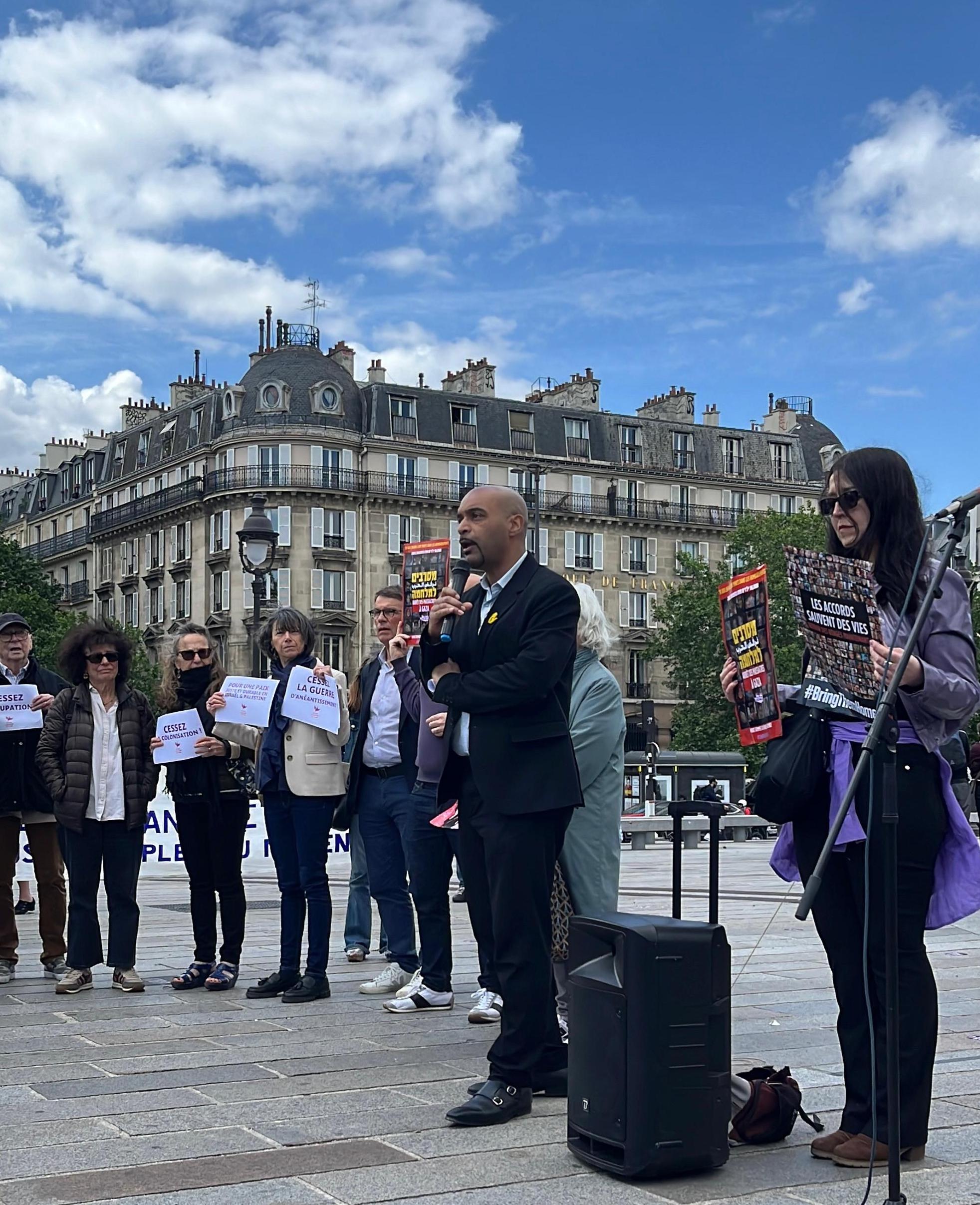 In France, the action is supported by Ami.e.s de Standing Together en France (FoST France), Alliance for Middle East Peace (ALLMEP), SOS Racisme, La Paix Maintenant and Les Guerrières de la Paix.