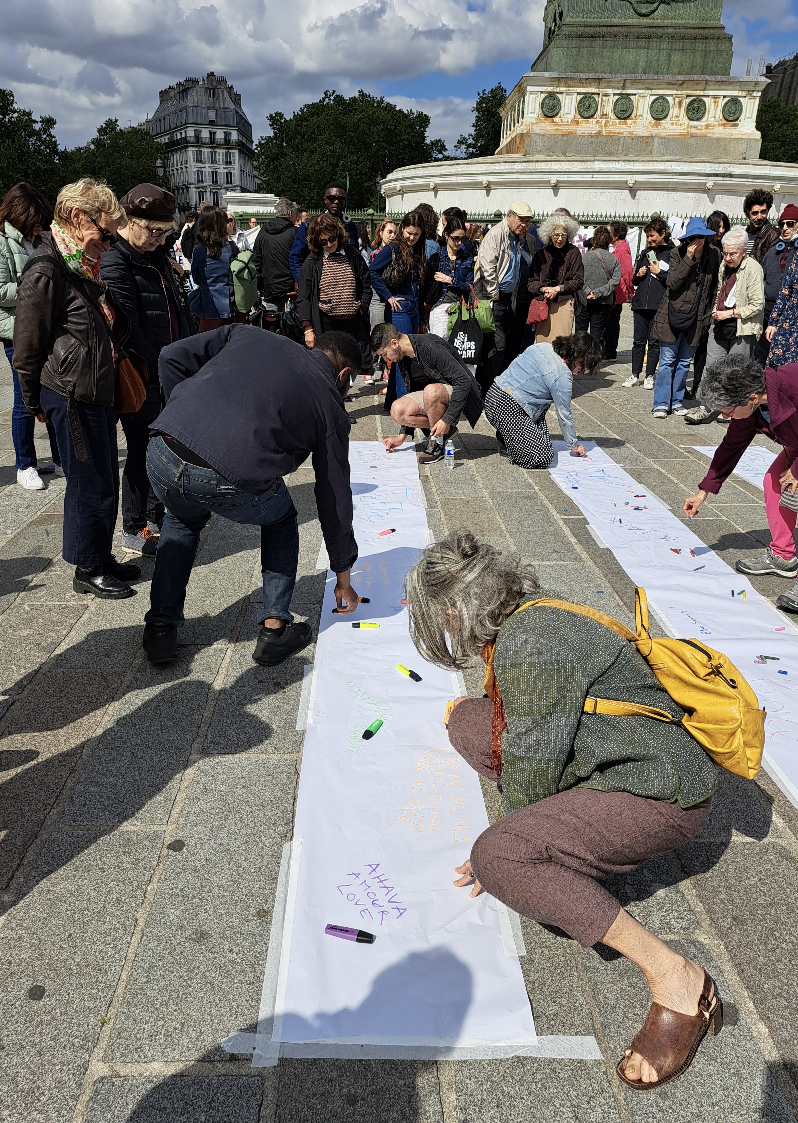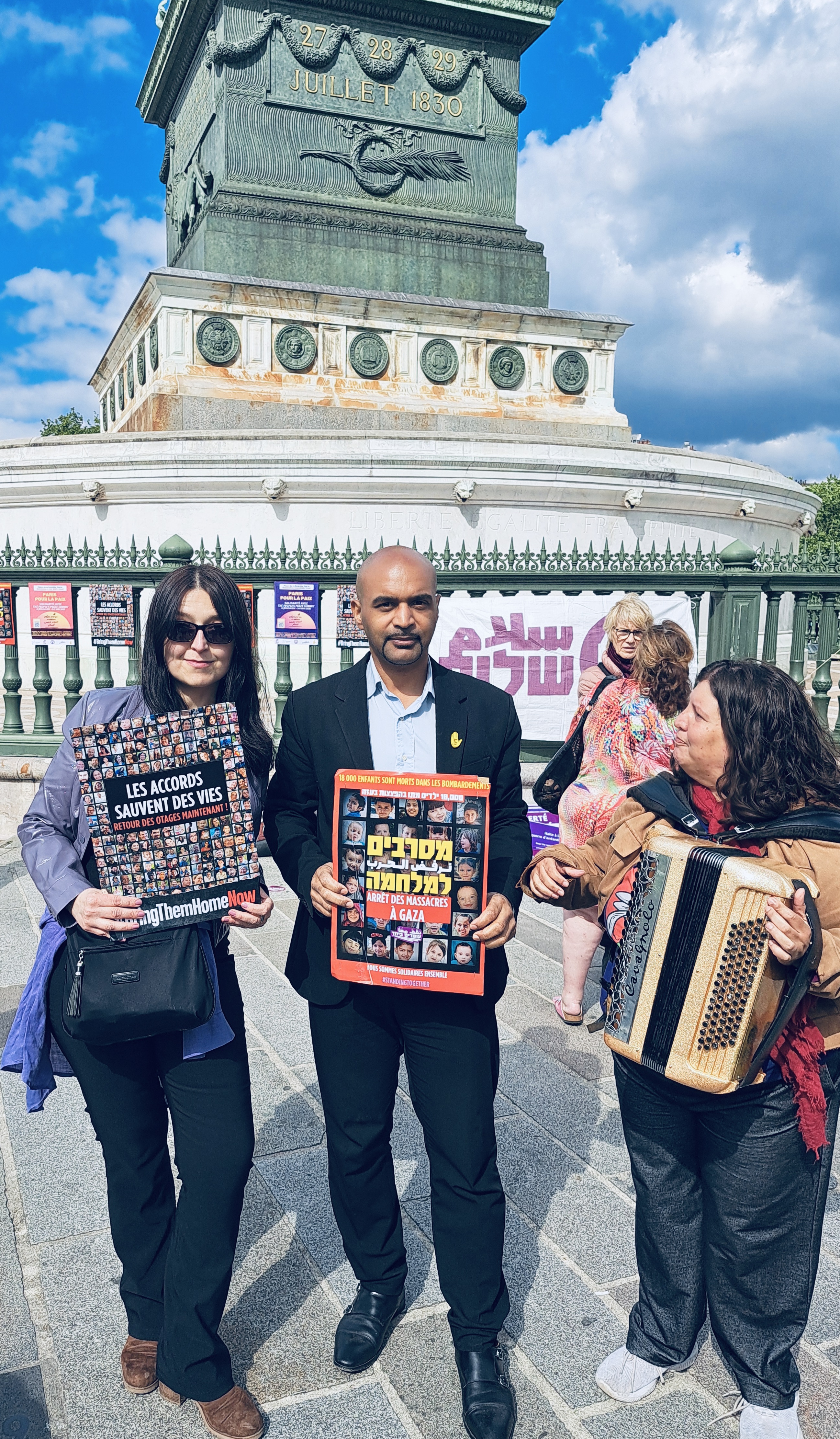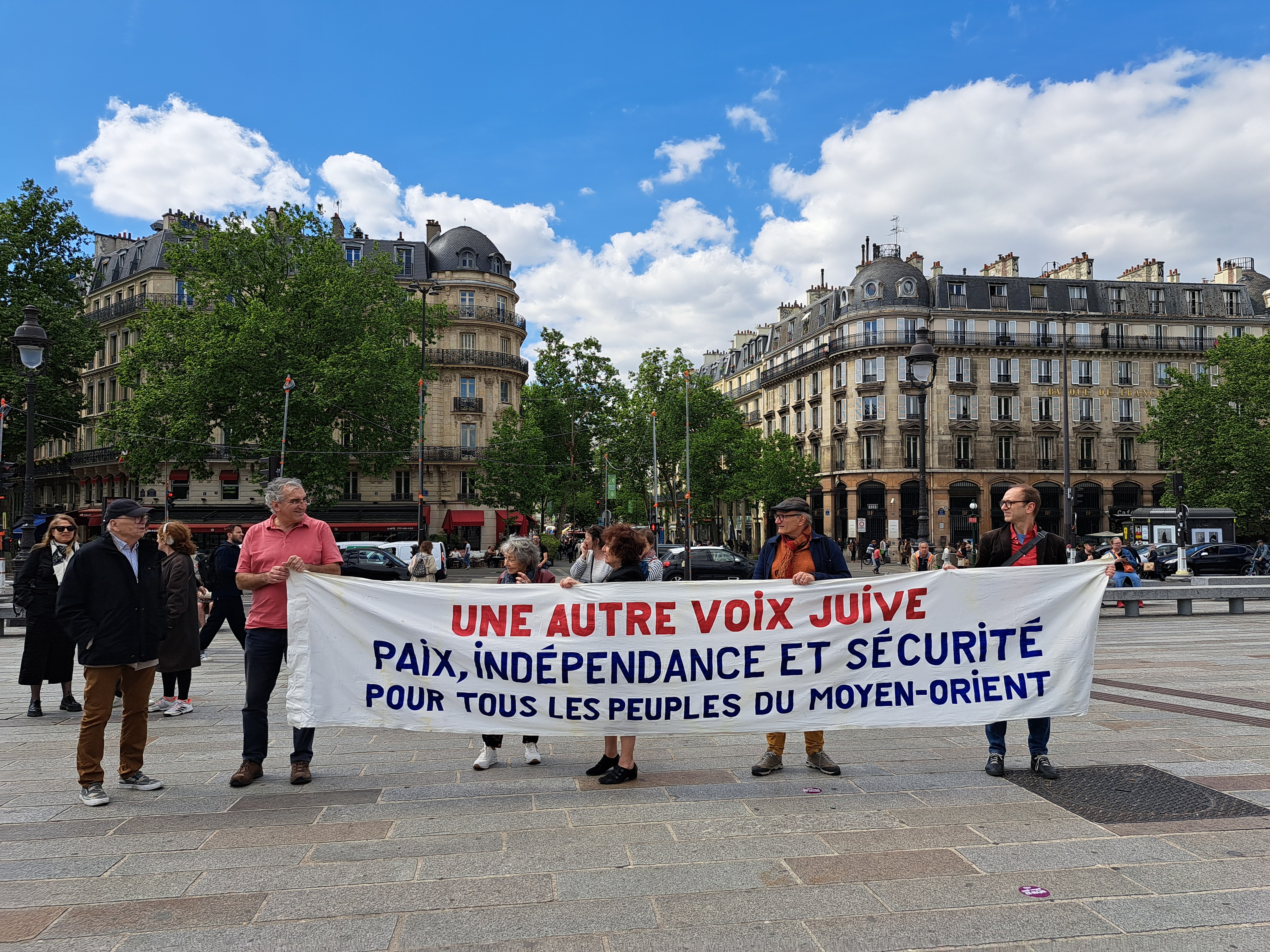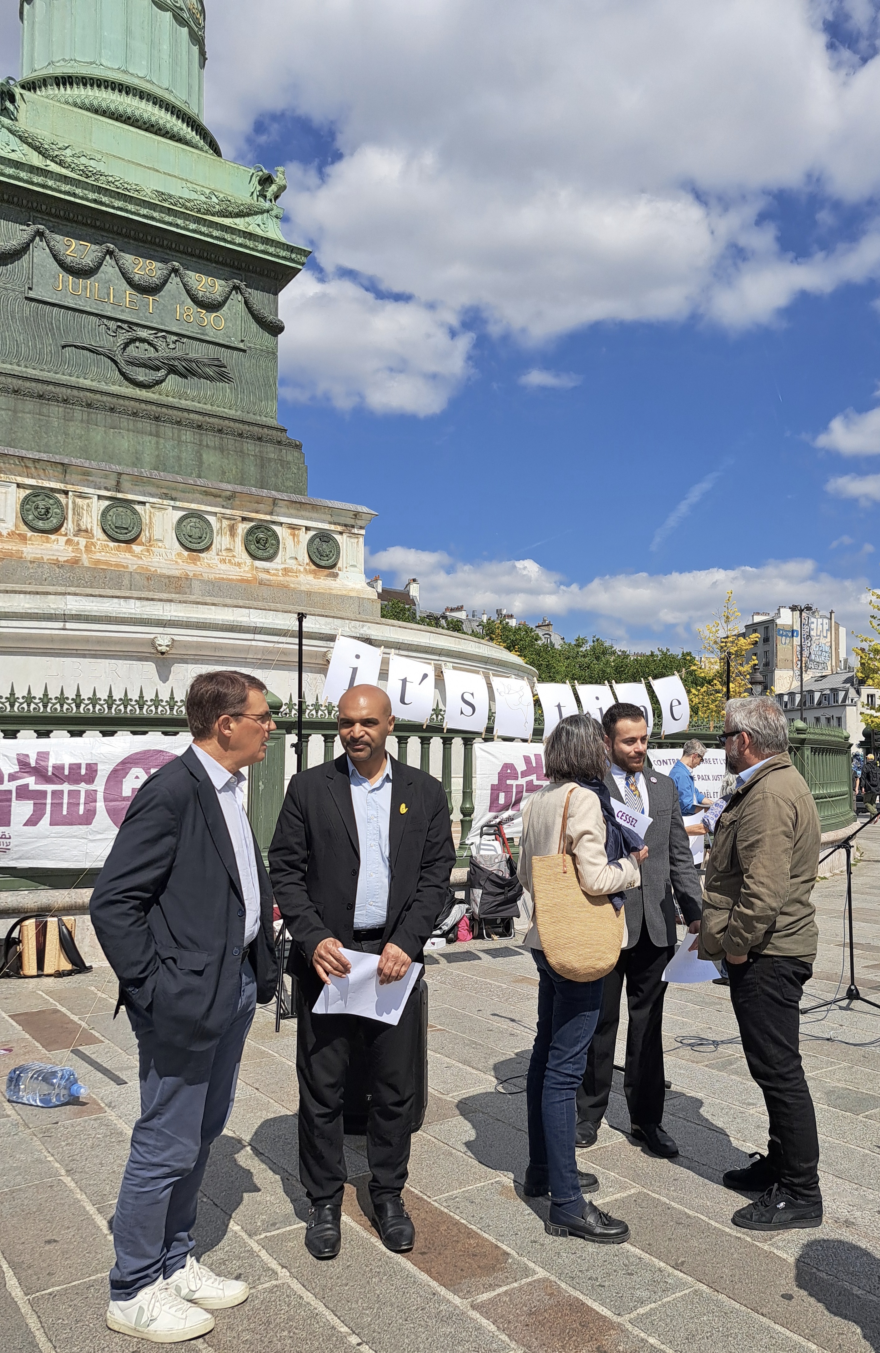 In France, the action is supported by Ami.e.s de Standing Together en France (FoST France), Alliance for Middle East Peace (ALLMEP), SOS Racisme, La Paix Maintenant and Les Guerrières de la Paix.