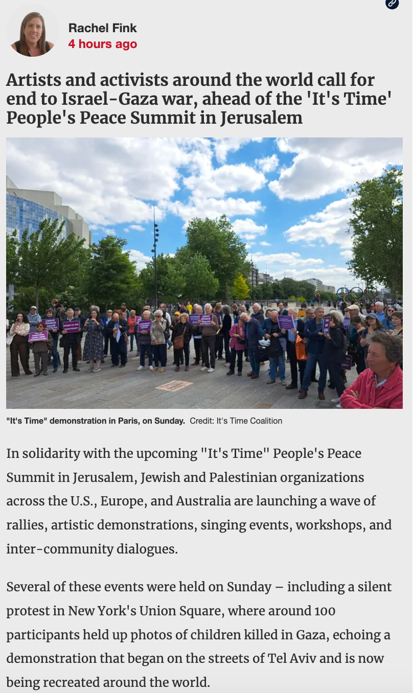 A major event is taking place in Jerusalem on May 8-9, 2025: a peace conference, “It’s Time” (The People’s Peace Summit) – https://www.timeisnow.co.il/.
